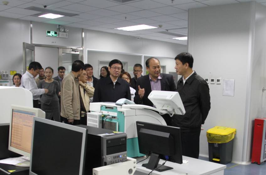 市人大常委会陈建华主任一行参观我院检验科,了解科室的配套设施