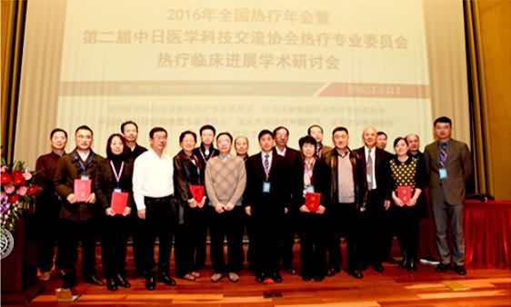“中日医学科技交流协会热疗专业委员会”在1月21日北京长富宫饭店成立!我院国际肿瘤热疗中心带头人张珊文教授、日本热疗医学研究所所长宇野坚教授、北京大学肿瘤医院放疗科朱广迎教授、中华放射肿瘤学杂志社董秀玥主任、中华医学防护杂志郭鲜花主编临会场祝贺。